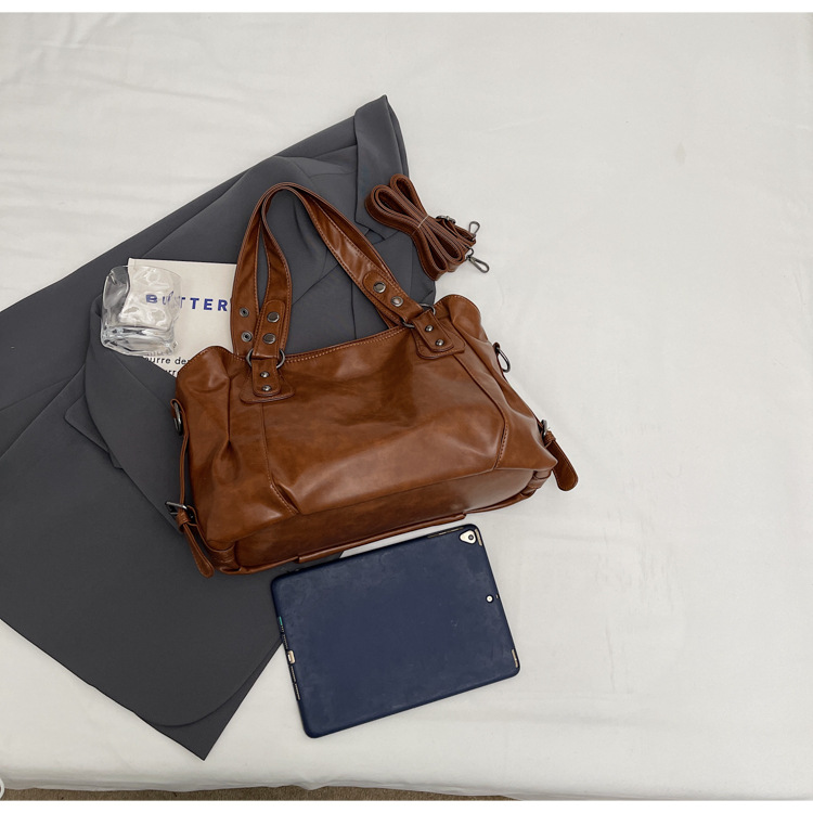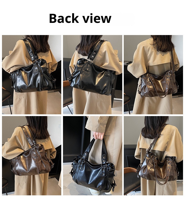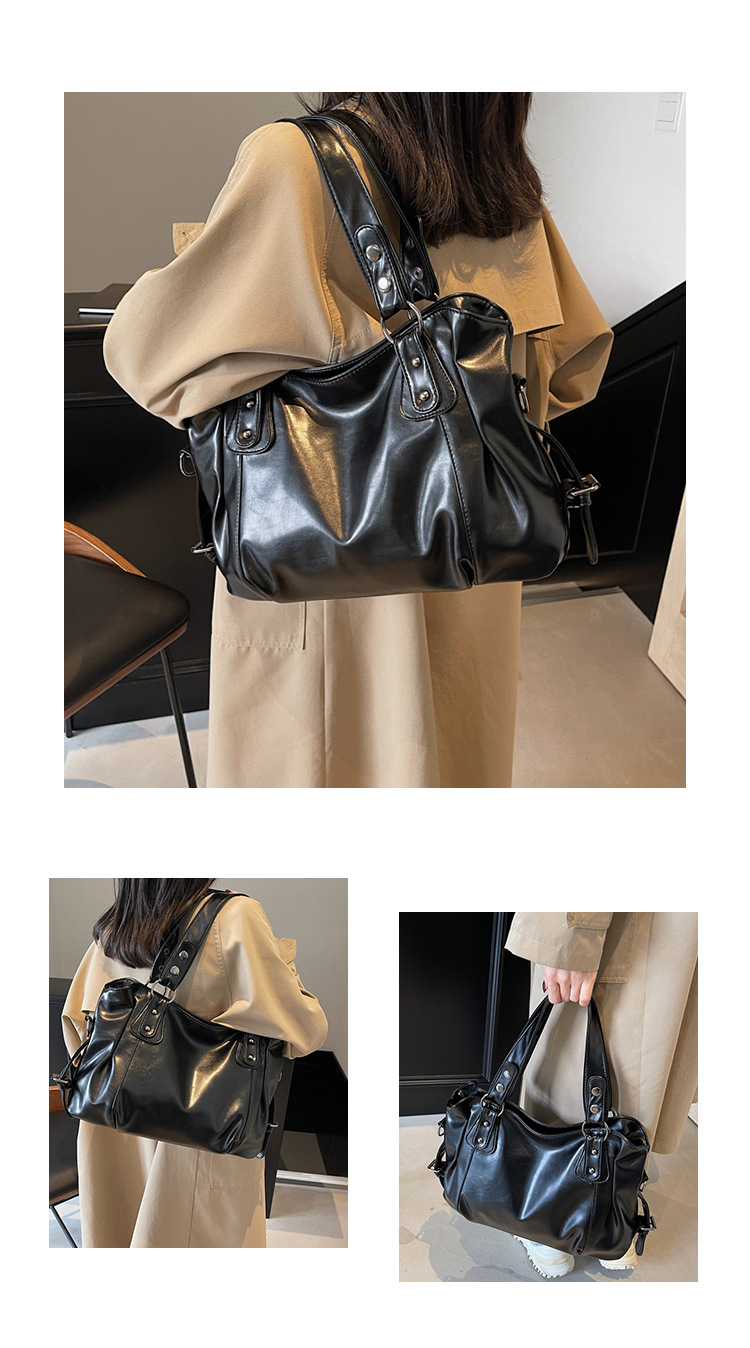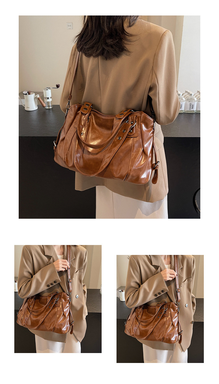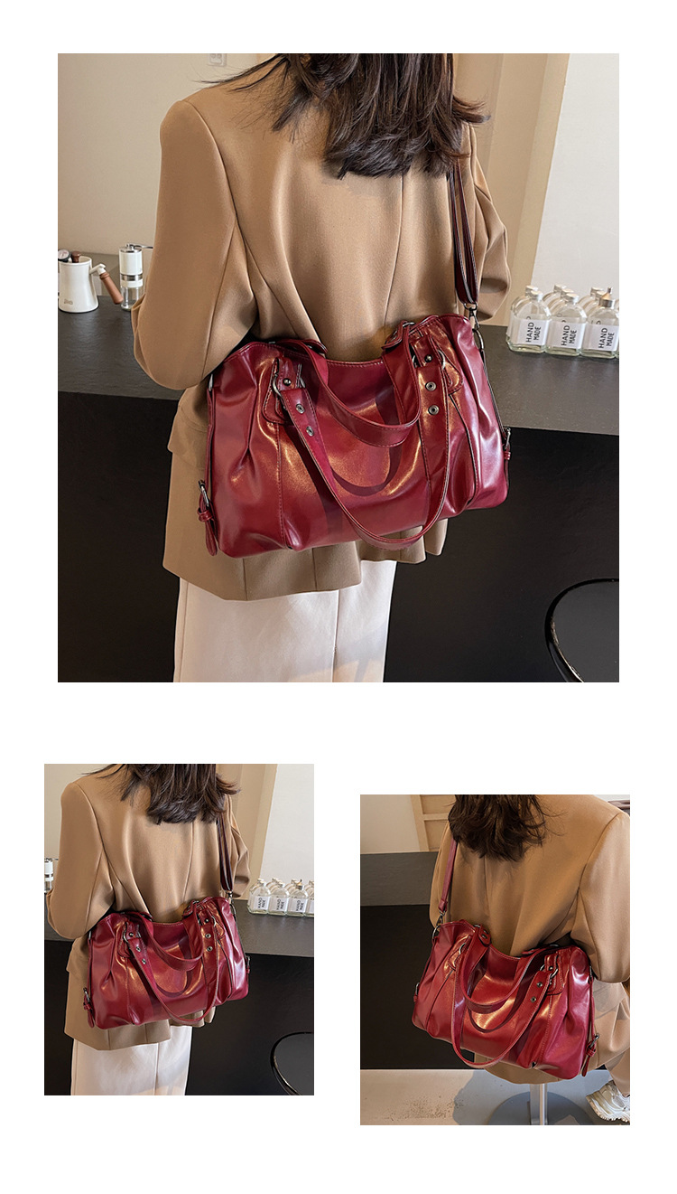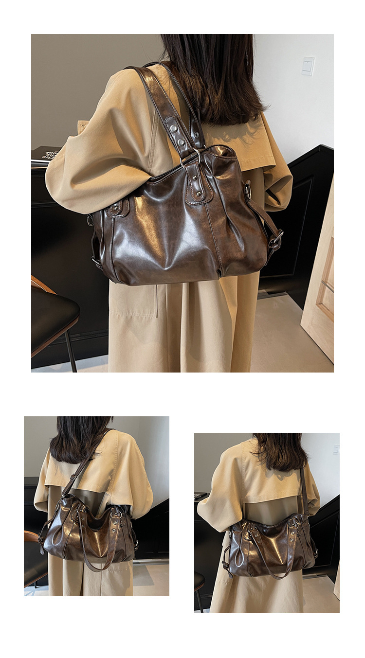 Casual Retro Solid Color PU Large Capacity Shoulder Bag
