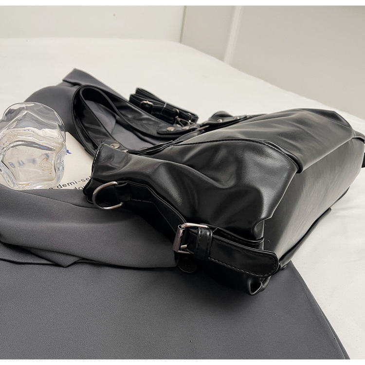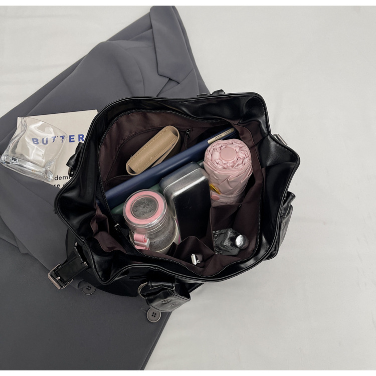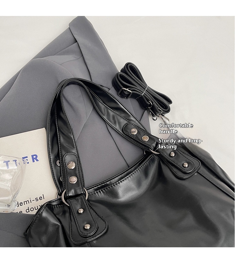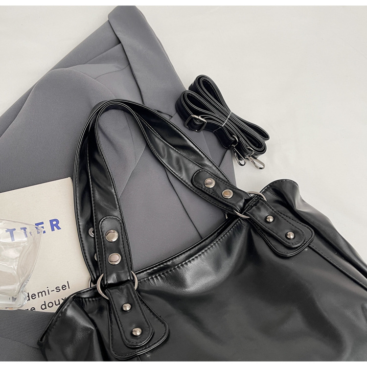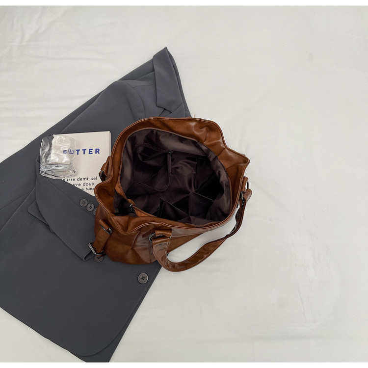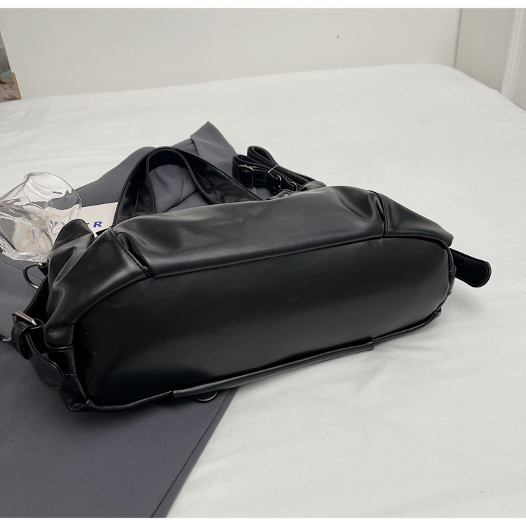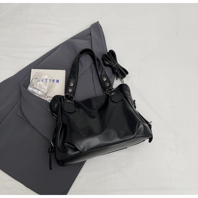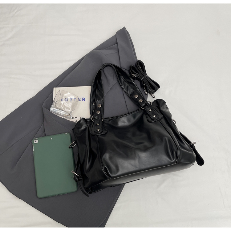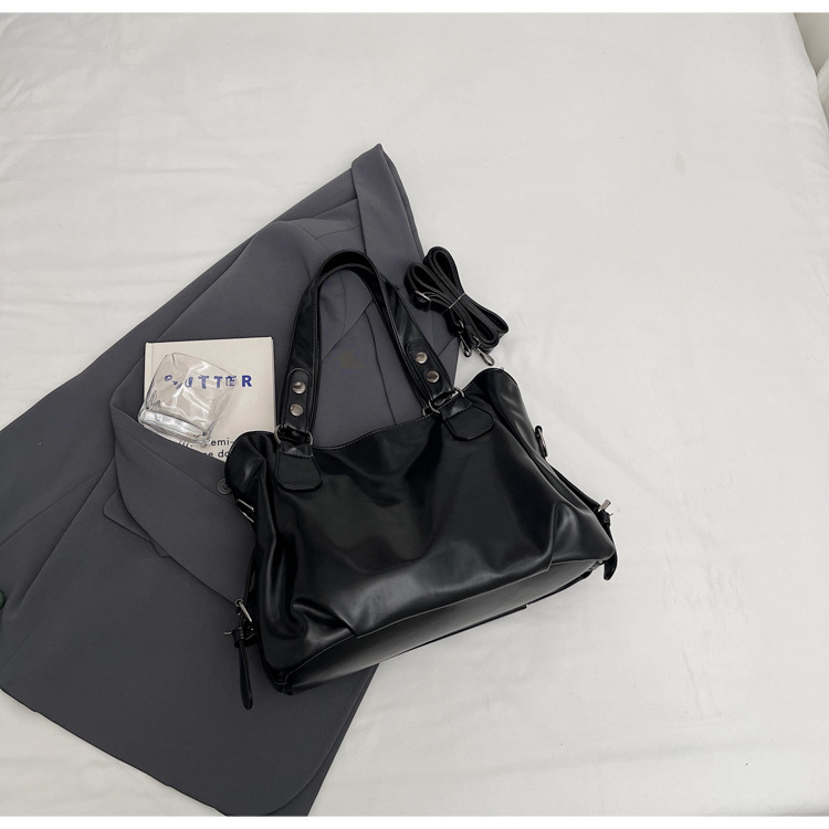 Casual Retro Solid Color PU Large Capacity Shoulder Bag
